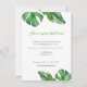 Grönten för tropisk vattenfärg i Monstera Löv Bröllop-inkvarteringsdetaljkort för inkvartering.