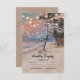 Vintagens målbröllop: OSA kort med en romantisk solnedgången tropisk strandinställning med lush handflatan träd och ljus med snörvning.