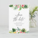 Vackert modernt tropiskt akvarell blomstergille för att spara datum. Vacker skrivstil. Del av en sommarbröllopssamling.