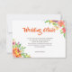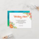 Modern, ljus och fräsch tropisk blomtema bröllopsdetaljkort med modern och handskriven typografi och vackra botaniska akvarellbuketter. Förgrundsfärg kan ändras under ”anpassa ytterligare”. En alternativ akvarellstruktur i orange/rosa finns tillgänglig under "anpassa ytterligare" genom att ta bort den grön/blå. En enfärgad baksida kan också väljas på detta sätt. Vänligen kontakta mig via butiken om du har några designrelaterade frågor. Matchande produkter finns i kollektionen "Tropical Floral Wedding".