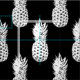 Tropiskt ananas frukt mönster DIY-textilvävnad. Exotiskt svart och vitt tryck med en frisk grönsaks-/fruktikon. Roligt matsymbol för ananas älskare, kock, vegan, vegetarian osv. Skapa dina egna kläder, tillbehör eller hemdekoration. Vintagen skrivs ut med anpassningsbarnas svarta bakgrund färg.