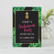 Moderna, djärva inbjudningar från den tropiska bachelorettpartiet med rosa accents, en faux-guld-foillanas och vattenfärgstropiska löv runt kant.