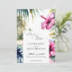 Sparar datumkortet, vattenfärgen handflatan rosa hibiscus för det tropiska destinationsbröllopet på sommaren, spara datumkortet