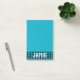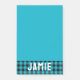 Turkos klibbiga personlig av anteckningsblock med ditt namn i stort vitt, fetstil brev vid grund i anteckningsblocket mot bakgrund av tropiska blåbuffelkontroller. anteckningsblock i personlig med en djup turkos buffalo-kontrolldetalj, ditt namn i stort fet brev och en stark skugga av varmt blått som gör att dina anteckningar och påminnelser blir svåra att missa!