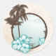 Snygg design med stiliserade hibiscus-blommor och handflatan träd-silhuetter som i en cirkel kompletteras av ett vackert blått färg. Till färg tillfogades en viss nöd till ge, en viss "oomf". Skriva namn eller ett litet meddelande i cirkeln eller lämna det som det är.