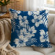 Tropiskt blå och vit Blommigt Kudde