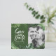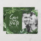 Tropiskt blad och handskriftsfoto bröllop vykort