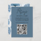 Ta en ny, botanisk beröring med den tropiska blåa OSA kort till din bröllop-station. Den här moderna OSAN är designad för att komplettera minimalistiskt, boho- eller trädgårdsininspirerat bröllop och har en rik blå bakgrund med elegant svart anpassade typografi och ett avsett utrymme för bröllop QR-koden - skapar gästsvar sömlöst och snyggt.Den omvända sidan visar en samordnande ginkgo löv mönster i en kompletterande palett, vilket ger en förfinad och sammanhållen bild av ditt paket. Perfekt för tropiska destinationsbröllop, orustiska utlandsceremonier eller elegant firande vid kusten, detta kort balanserar enkelhet med botaniska charmer.
