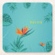 Tropiskt blått Grönt Handflatan Monogram Belize Underlägg Papper Kvadrat