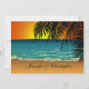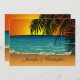 En romantisk tropisk stranddesign med en illustration av en strandscen vid solnedgången med en silhuett av handflatan lämnar i förgrunden. Formgivningen finns på båda sidor av bröllopsinbjudningen. På inbjudningens framsida finns anpassade att lägga till namn i bruden och brudgummen, medan baksidan är anpassade för detaljerna i ditt kommande specialtillfälle. Den här bröllopsinbjudningen koordinerar med den tropiska bågen vid Sunset Bröllop Collection. Om du behöver hjälp med anpassningen för din speciellare dag eller vill ha det för produkter som inte erbjuds med den här designen kan du kontakta oss via vår WeddingBazaar-butik.