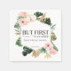 Vi introducerar "But First Mimosas" Moderna ramar vattenfärg blommig palm hibiskus tropisk grönska bröllopsdusch pappers tallrikar, designade av CaMiDesigns. Dessa vackert tillverkade tallrikar har ett livfullt tropiskt motiv, perfekt för att lägga till en touch av elegans till din bröllopsduschfirande. Varje tallrik visar en fantastisk vattenfärgdesign som kombinerar frodiga palmblad och ömtåliga hibiskusblommor, vilket skapar en festlig atmosfär för din speciella dag. Perfekta för att servera läckra godsaker och uppfriskande drycker, dessa tallrikar är både stilfulla och funktionella.