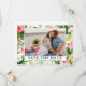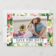 Modern tropisk Blommigt i vattenfärgen, Grey och Handflatan Löv sparar det datum då kortet för Förlovning av foto sparas
