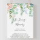 Detta tropiska blommiga minnestecken är perfekt för ett modernt bröllop eller brudshow. Designen har illustrerade vita, gula, rosa, skära blommor med vackra akvarellgröna blad som inger elegans.