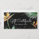 Tropiskt Blommigt Script Black Guld Gift Certifica