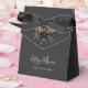 En scoky-chic Halloween-design med en bild av den tropiska blommigtens skalle som är täckt med orange och burgundblommor från öar och gröntens djungelblad på en rök svart bakgrund. Anpassa den här unika och eleganten Halloween-förmånslådan med två linjer anpassningsbar text.