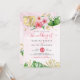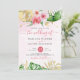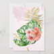 Tropisk rosa och persika med guld vattenfärg blomsterbröllopsinbjudan, med en mycket ljus rosa tvätt texturerad bakgrund. Anpassa namn, datum och information.