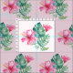 Tropisk blommigt och grönt mönster har rosa hibiscus blommor och lush grönt monstera löv på blekens rosa. paletten trendig rosa och grönt färg är perfekt för nästa projekt för hantverk eller torka. Om du vill ändra på det här mönstren klickar du bara på "Anpassa" och justerar storleka för rutan.