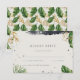 Den här inbjudan innehåller grönt vattenfärgstropiska löv och simulerad löv från guld. Kopian är redigerbar och teckensnittet kan ändras. Baksidan har en matchande mönster. Underbar för sommar- och strandbröllop!