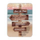 Romantiska havsbröllop sparade datum-magneter med en frodig solnedgång sandstrand, stränga glödlampor och din text skriven på en rustik träskylp