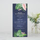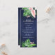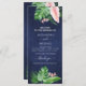 Den tropiska Grönten Handflatan Löv och Rosa Flowers Watercolor med Faux Ro Gold Foil Geometric form och Navy Blue Background Vår eller Summer Bröllopsprogram Cards - innehåller vacker och elegant manustypografi med moderna tropiska botaniska blommor och grönenergi för den speciella Bröllopsdagen firande.