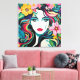 Den här abstraktens svidande design fångar kärnan av en tropisk gudinna, där man blandar blommigt inslag med levande, färgstarkt vågar av hår. Den meriserande blicken och riken, mättat färg skapar en drömmande, livlig sammansättning som avger värme och energi. Perfekt för älskare av pulserande popkonst och botanisk skönhet.