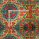 litet retro känselförnimmelsetyg med orangechampinjoner på röd gult- och gröntbakgrund med sötlöv och vines.