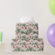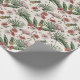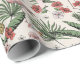 Detta eleganta tropiska flamingo-inpackningspapper har ett blomsterarrangemang med handritade rosa flamingor, hibiskus- och jasminblommor, ananas, bananblad och tropiska drycker, allt mot en elegant elfenbensvit bakgrund.