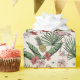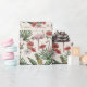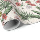 Detta eleganta tropiska flamingo-inpackningspapper har ett blommigt mönster med handritade rosa flamingos, hibiskus- och jasminblommor, ananas, bananblad och tropiska drycker, allt mot en elegant elfenbensvit bakgrund.