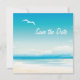 Teal blue Ocean och bort blå himmel. Ocean vågar kraschar till stranden, fiskmåsar flyng i himlar och en silhuett av handflatan träd - fullkomligt Anpassade Bröllopapporter och matchande extra.