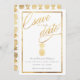 Tropiskt ananas spara Guld Bröllop vårt nya datum med en gyllene ananas framsida och centrum med en slående mönster av ananas på baksidan.