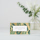 En affärskort med en mönster av tealdjungelns löv på en guld-fibrillbakgrund. Anpassa den med ditt namn och din titel i grått-text för kol i en vit rektangel. Lägg till namn, titel och kontaktinformation på baksidan.