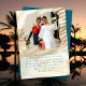 Bröllop tackar dig för platta kort med penselfotohållare. Tropisk design med tealblått text. Lägg till meddelandet under fotot. Som brudens sida/Maid of honor tackar jag er, men det här fungerar som ett tack till nästan alla, inklusive gäster från bröllop. Kant i bild-mallen är ojämn - som om de borstades, och ett fyrkantigt foto fungerar bäst. Du kan också lägga till ett foto med valfri orientering och flytta fokuspunkten till mitten genom att dubbla-klicka på fotot i designen verktyg.