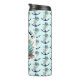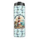 Termisk Vattenflaska för Beach Life. Illustration av en fyr-, surfbrädor, handflatan träd och delfin.
