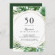 Denna geometriska destination tropiska 50:e födelsedagsfest inbjudan är perfekt för en modern födelsedagsfest. Konstruktionen har handmålad vattenfärg grönt handflatan och banan löv som är väl placerad i vackra buketter och som fäster ett guld geometriskt ram.