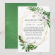 Grön och gul geometrisk tropisk reducerad bröllopsinbjudan med vita magnolior. Under dessa osäkra tider kan det hända att du måste hålla ett mindre bröllop än vad som ursprungligen planerats. Detta bröllopskort tar bort det pinsamma och avlastar din hjärna! Du kan dessutom ge möjlighet att följa med på en virtuell ceremoni.