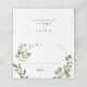 Denna tropiska grönt löv det spanska bröllop-kortet är perfekt för ett modernt bröllop. Utformningen har handmålade vackra löv för grönt, som lägger till ett guld-geometriskt ram. Anpassa baksidan av platskortet med namn på bruden och trippen och datum.