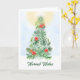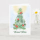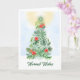 Ett färgstarkt julkort har en Julgran-design av tropiska löv och Hibiscus blommor. Grund-texten (redigerbar) lyder "varmaste Önskemål". Tom inuti.