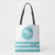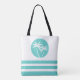 En enkel och lättsinnig tropisk utformning med öviber, ett par handflatan träd mot en coola akva med rundad bakgrund med koordinerat rand i samma färg. Anpassa med namn, monogram eller annan text. Det här är ett bra val att bära med sig dessa extra-artiklar när du reser, för shoppingutflykter, skola, arbete med mera.