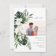 Få dina gäster upphetsade och redo att fira bröllop eller party med din tropiska Blommigt Handflatan & White Foto Save the Date Card.