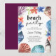 Inbjudan från studenten Beach Party, med vattenfärgsegeler och tropiska blommor. "Strand party" är handskrivet och den återstående ordalydelsen är fullt redigerbar.