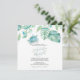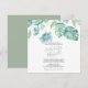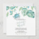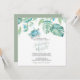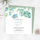 Den här fyrkantiga inbjudan till repetitionen middag har era namn satta i en snygg handskriven typsnittsstil med evenemangets detaljer i ett klassiskt, teckenlöst grått serif-teckensnitt på en krispig vit bakgrund med en övre kant bestående av min originella akvarell havssköldpadda och tropiska grönska monstera palmblad i nyanser av blått, grönt och turkos. Baksidan av inbjudningskortet har en kompletterande tropisk, ljusgrön färg. Ett botaniskt men elegant val för avslappnade strandbröllop och strandnära middagsrepetitioner. För att se mitt hela brevpapper för bröllop, besök DoTellABelle på Zazzle.