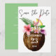 Få dina gäster på humör för fest med denna tropiska hawaiianska blomsterkokosnöt säg-datum-inbjudan. Finns i flera färger.