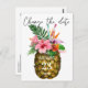 Tropiskt hawaiiskt Blommigt Ananas Ändra datum Vykort