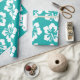 Det tropiska ötemat som omsluter pappra har en mönster av vita hibiscus blommor i akvblått/grönt. Perfekt för strand, hawaiiska och kustnära tema helgdag, födelsedag, bröllop etc. Originalteckningen KL Lagrar.