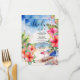 Förhöj din strandfirande med denna vackert designade bröllopsmeny, perfekt för ett tropiskt destinationsevenemang. Mot en drömlik bakgrund av målade strandparasoller inbjuder denna 11,4 cm x 15,9 cm meny dina gäster att njuta av en festmåltid som är lika livfull som omgivningen. Runt scenen finns ömtåliga hibiskusblommor i fantastiska nyanser av orange och rosa som tillför en stänk av tropisk charm. Denna meny framhäver inte bara din läckra bröllopsmiddag men kompletterar också den lugna atmosfären vid din strandfirande. Helt anpassningsbar för att matcha din unika stil och menyval.