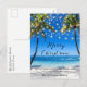 Tropiskt julkort för kuststranden - har en underbar, tropisk strand, med en ljus- och söt-skript, typografi. Julvykortet ingår i en samling.