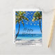 Tropiskt julkort för kuststranden - har en underbar, tropisk strand, med en ljus- och söt-skript, typografi. Helgdag-vykort ingår i en samling.