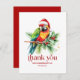 Den här festliga, tropiska julens tematiska design har - tack - en vacker röd retrotypografi med en tropisk julfågel i julhatt. Anpassningsbar familj namn.