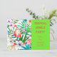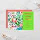 En färglös vibrerande inbjudan som passar för en djungel, temad eller tropisk ö kallad party. Denna utformning har en rosa flamingo med handflatan, hibiscus och djungelväxtblad. Text- och kalkgrön bakgrund färg är fullt anpassade.