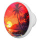 Keramisk doorknob/pull med illustration av en vacker tropisk solnedgång med handflatan träd och vågar på stranden.